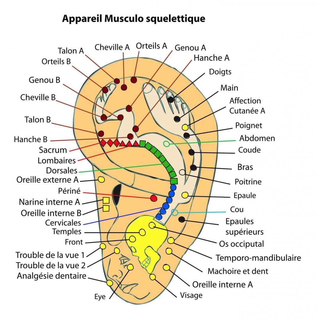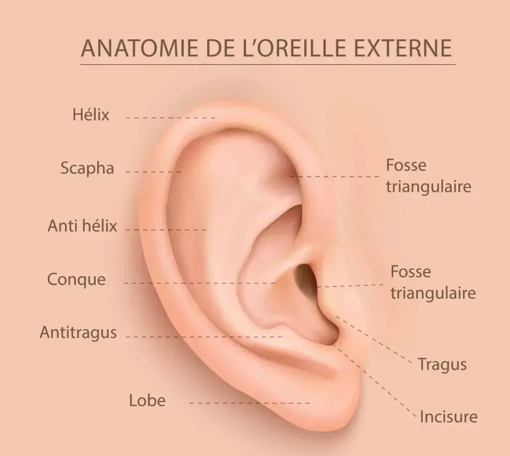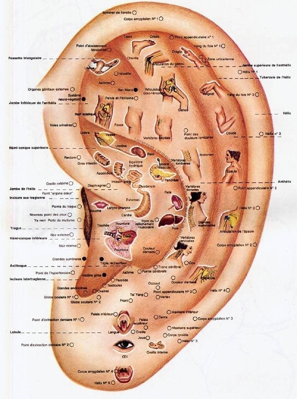 Fonctions internes : la conque et le tragus sont liés à la digestion, à la respiration et aux états de tension